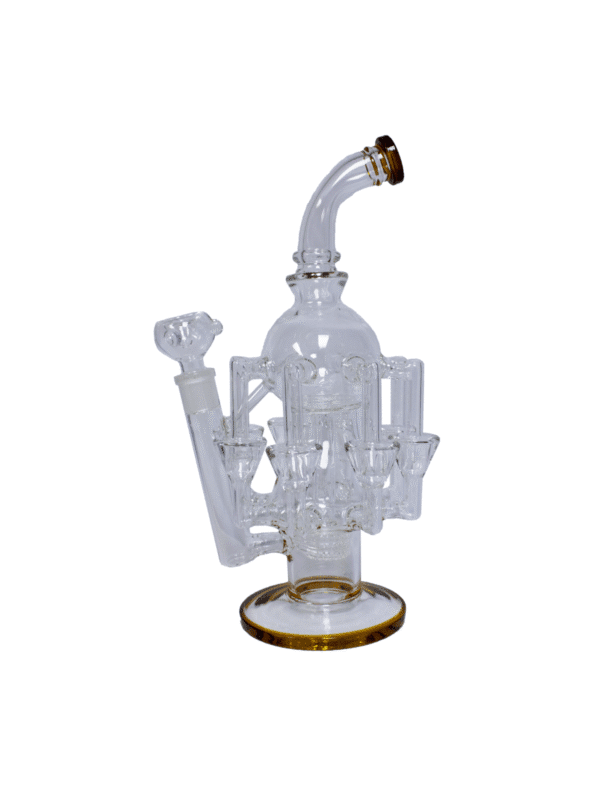 This recycler offers a unique blend of advanced filtration and aesthetic appeal. The 8 external tree percolators combined with the internal showerhead percolator ensure that every hit is smooth and enjoyable. Whether you’re looking for a centerpiece for your collection or a high-performing piece for daily use, the Amber Recycler is an excellent choice.