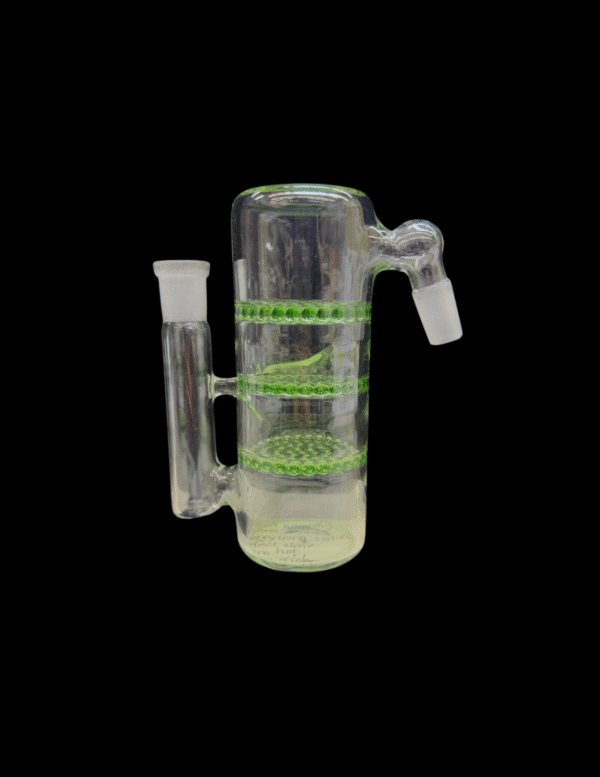 Experience maximum filtration with the 14mm 45° Triple Honeycomb Ash Catcher. Designed with three stacked honeycomb percolators, it delivers exceptionally smooth and cool hits while keeping your water pipe clean. Made from durable, heat-resistant glass, this ash catcher fits most 14mm rigs with a 45-degree joint. Perfect for users who want superior diffusion and cleaner sessions in one sleek accessory.