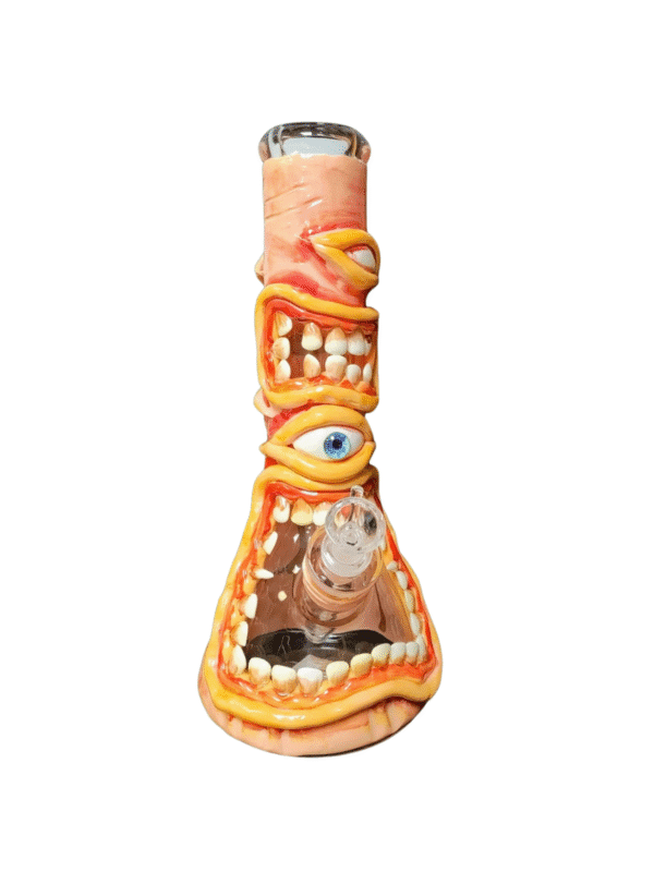 Straight from the wastelands of a failed experiment, the Biofreak 12″ 3D Water Pipe is a glass-crafted monstrosity that fuses science fiction and nightmare fuel into one unforgettable smoking experience. This beaker bong is part of the Mutation Series—featuring grotesque details like jagged teeth, bulging veins, and a twisted central eyeball that seems just a little too alive.