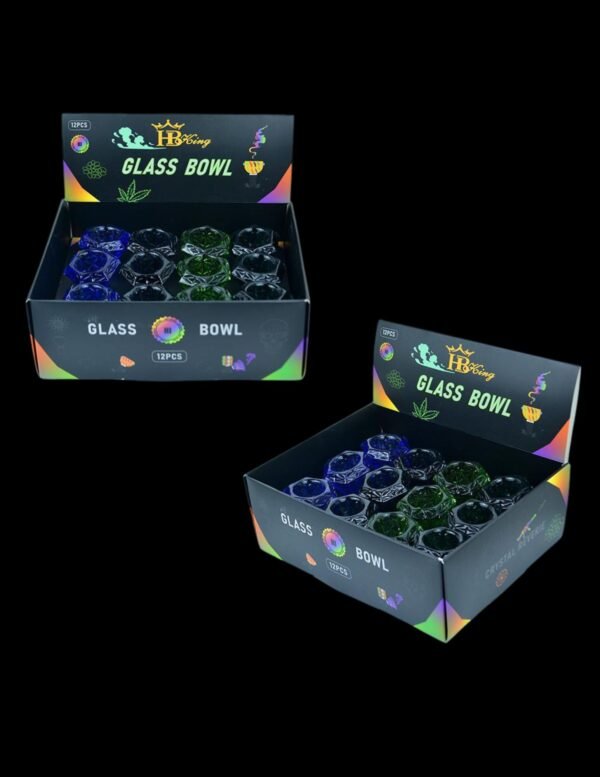 Stand out with this 12-pack of 14MM glass bowls, each sculpted with a stunning crystal-cut aesthetic and finished in assorted colors.