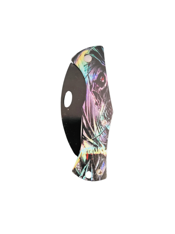 Strike a bold impression with the “Grim Spectrum” 3.5″ folding knife, featuring a vivid, full-color skull design on the handle. Crafted for collectors and everyday carry users alike, this compact knife blends eye-catching psychedelic artwork with reliable function. The stainless steel blade offers sharp cutting power and folds smoothly into a durable handle. A perfect choice for anyone looking to combine edgy aesthetics with practical utility in a pocket-friendly size.
