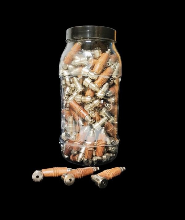 Bulk Jar of 3″ Wood Pipes, containing 100 pieces. Each pipe is crafted from high-quality wood, providing a classic smoking experience with a natural aesthetic.