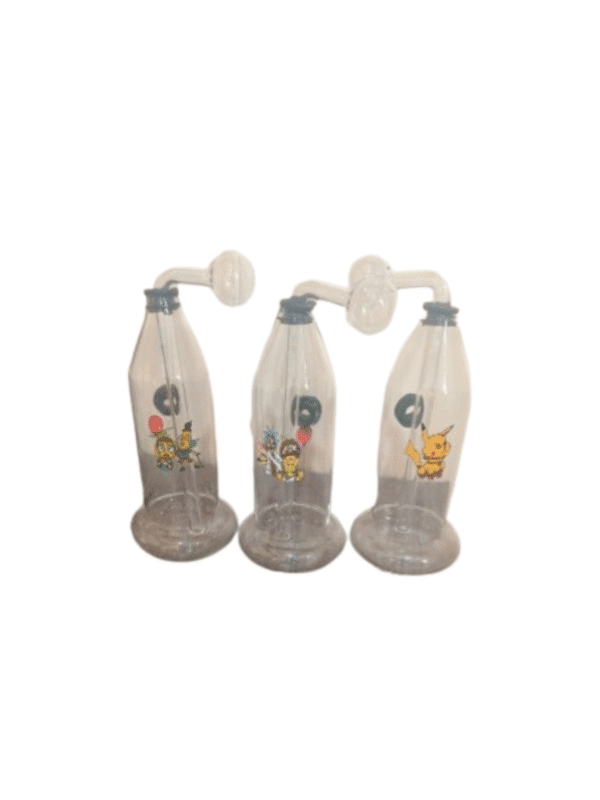 Add some character to your smoking setup with our Clear Oil Burner Rigs, standing 5 inches tall and decorated with playful cartoon decals. These rigs are designed for functional use with oils or concentrates and bring a fun twist with eye-catching designs including popular characters. Whether for personal enjoyment or resale, these pieces combine quality with creativity.