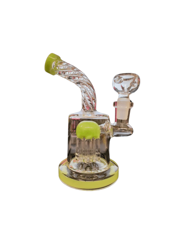 This water pipe is crafted from thick borosilicate glass, built to withstand heat and impact. Its eye-catching features include a vibrant colored mouthpiece and base ring, combined with a matching accent dome over the matrix perc for added flair. The fixed downstem channels smoke into the matrix percolator, which breaks it into fine bubbles for smoother, cooler inhales.